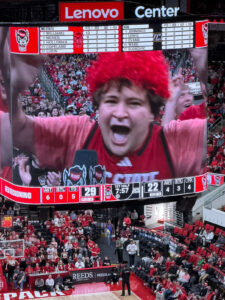 In case you missed it at the Lenovo Center, sam was on the Jumbotron and won a prize (jewlery gift card?) for answering obscure NC State Basketball trivia. Go Sam!